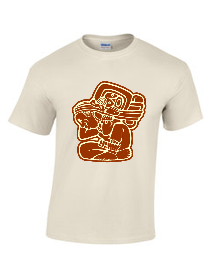 Mayan Keeper of Time Natural Tee with Brown ink. (NB)